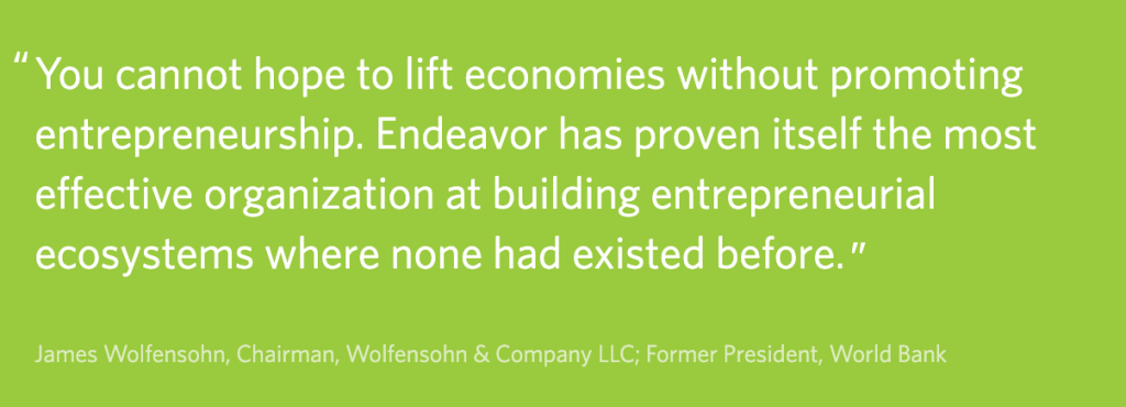 Today, Endeavor has established a presence in nearly 40 markets across Latin America, Asia, Africa, Middle East, and underserved areas of Europe and the United States, and has evolved over two decades to reflect new realities and new opportunities. Learn more about the Endeavor model here.
